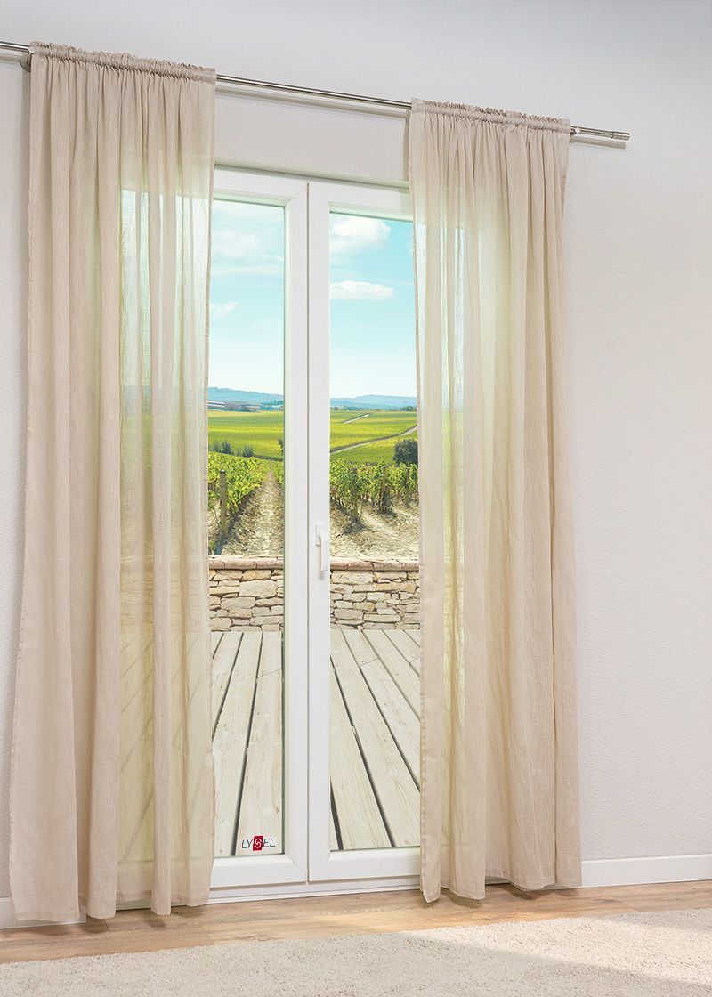 Dieser transparente Dekostoff bringt Leichtigkeit und Stil in Ihr Zuhause. Das eingewebte Querstreifenmuster mit sanft gewölbten Linien verleiht dem Meterwarestoff eine besondere Tiefe und setzt dezente Akzente. Dank der feinen Transparenz lässt ein Fensterbehang aus diesem Stoff Tageslicht weich und stimmungsvoll in den Raum und schafft eine helle, freundliche Atmosphäre, die zum Verweilen einlädt. Aus diesem Dekostoff in Meterware können neben Gardinenschals und Raffrollos auch Tischdecken entstehen.