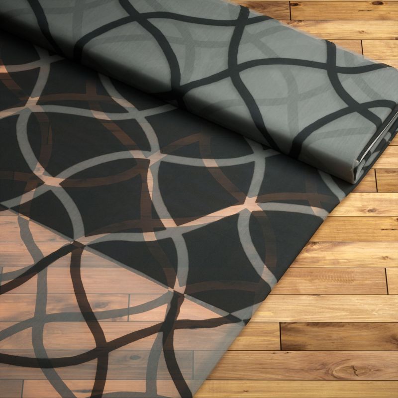 Mit seinem in Ausbrenner-Optik gestalteten Muster verbreitet dieser Stoff eine weiche Behaglichkeit. Die geschwungenen Linien durchziehen den Stoff in gleichmäßiger Harmonie, kreuzen und überschneiden sich, wodurch ein lockeres, netzartiges Design entsteht. Da das Muster durchsichtig ist und sich in seiner Transparenz vom Grundstoff unterscheidet, können bei Lichteinfall abwechslungsreiche Licht- und Schattenspiele entstehen. Mit unifarbenen, blickdichten Stoffen lässt sich dieses Modell toll kombinieren. Der Stoff liefert die ideale Basis für eine Fensterdeko nach Maß, die Sie sich beispielsweise als Raffrollo oder Gardinenschal im Konfigurator zusammenstellen können. Nehmen Sie den Stoff als Meterware zur Erstellung individueller Wohnaccessoires.