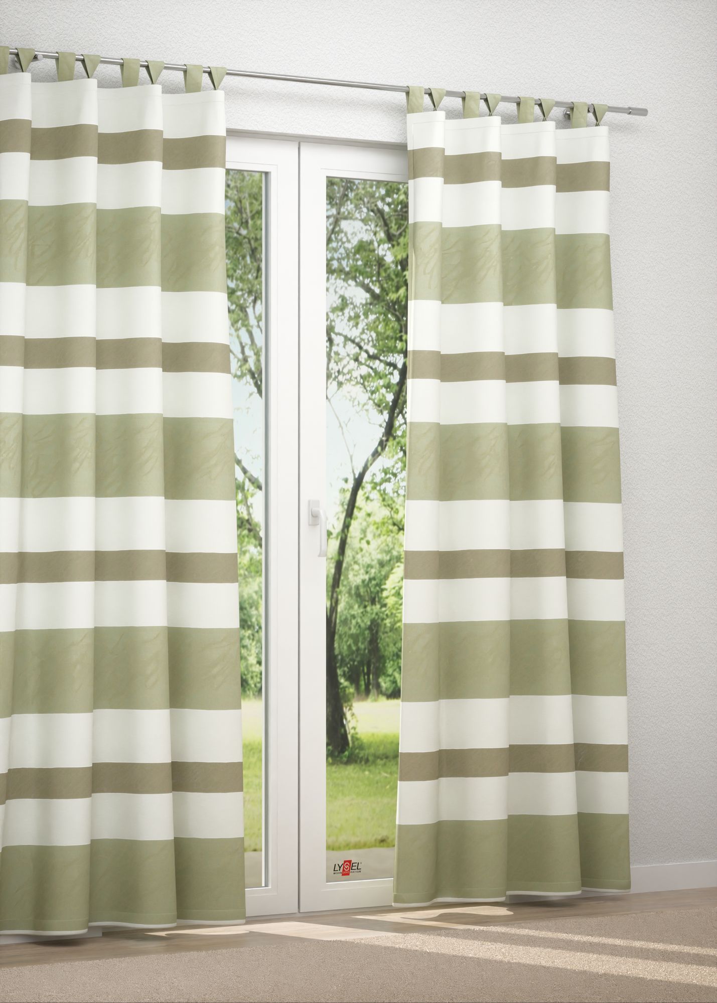 In Verbindung mit den Streifen in warmem Olivgrün und sanftem Lindgrün wirken die cremefarbenen Felder wunderbar natürlich und sind eine stilvolle Ergänzung. Verwandte Töne wie Weiß, Ecru und Beige wirken in Kombination harmonisch und freundlich. Das einladende Ambiente können Sie mit hellem oder rötlichem Holz sowie luftigen Pastellfarben noch unterstreichen.