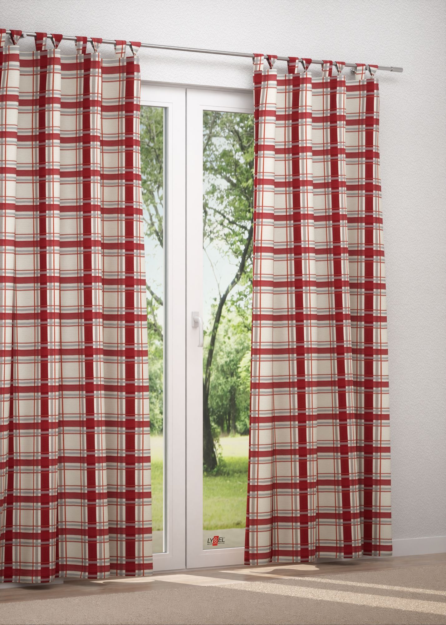 Das vorwiegend in Rot gestaltete Karomuster sorgt für ein besonderes Flair. Warm, energetisch und lebendig sucht es die Aufmerksamkeit des Betrachters, die anderen Farben geraten in den Hintergrund, was die Mehrdimensionalität des Designs unterstützt. Rot kann noch mehr leuchten, wenn Sie es mit Abstufungen von Grau, Creme und Beige in Verbindung bringen. Helles Holz, Rattan und frische Grüntöne schaffen ein angenehm wohnliches Flair.