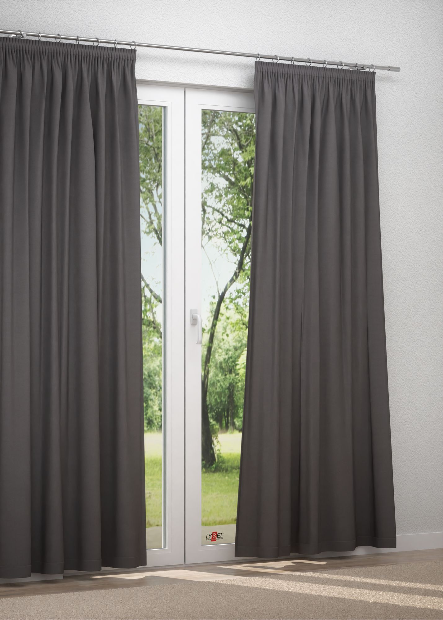 Dieser unifarbene Dekostoff mit identischer Vorder- und Rückseite lässt sich vielseitig für Kissenbezüge, Raffrollos und Gardinenschals verwenden und entsprechend des individuellen Stils geschmackvoll kombinieren und in Szene setzen. Mit einer weichen, samtartigen Optik und Haptik ist dieses Material die perfekte Voraussetzung für Wohnaccessoires, die Gemütlichkeit und Behaglichkeit vermitteln. Wird der Dimout-Polyesterstoff für den Sonnenschutz und die Lichtregulierung am Fenster verwendet, bietet er zudem einen guten Wärmeschutz und sorgt für eine angenehme Raumverdunklung sowie stets zuverlässigen Sichtschutz. Das eingearbeitete Bleiband ist für einen schönen eleganten Fall am Fenster besonders von Vorteil.