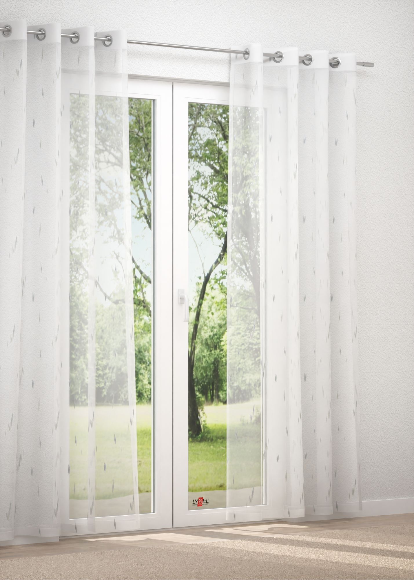 Dieser Scherli-Stoff ist ein besonderes Highlight. Das von der Natur inspirierte Design äußert sich darin, dass einzelne bzw. in Gruppen eingewebte Effektfäden ein einzigartiges, abstraktes Muster entstehen lassen. Das Polyestergewebe ist transparent und trägt zu einem leichten und lockeren Flair im Raum bei. Das dezente Muster fügt sich elegant in den Raum ein und lässt sich abwechslungsreich kombinieren. An den Seiten und am Abschluss ist der Stoff gesäumt. Außerdem ist ein Bleiband eingearbeitet. Für die Reinigung des Gewebes empfiehlt sich der Schonwaschgang bei 30 Grad.