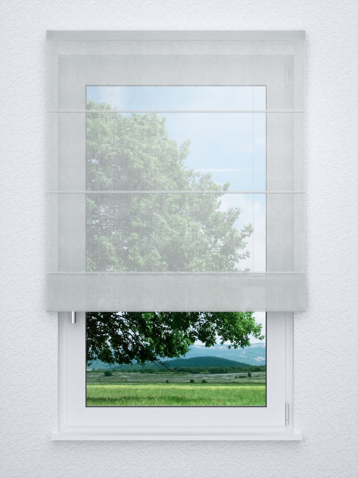 - Ein Raffrollo classic aus transparentem Stoff, 100% Polyester - individuell nach Ihren Wunschmaßen gefertigt. Geliefert wird der Artikel inklusive Befestigungsmaterial.
