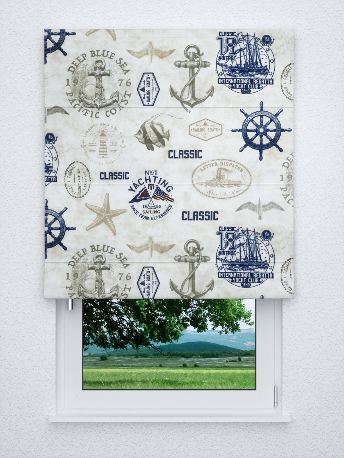Ein raues, maritimes Küstenflair transportiert dieser Stoff mit leichter Marmorierung. Die griffige Haptik und die an Leinen erinnernde Oberfläche sorgen für eine naturnahe Aura. Dabei kann der Hintergrund an tosende Wellen erinnern und bietet den dort aufgebrachten Elementen zum Thema Küste und Seefahrt die beste Bühne. Möwen, Leuchttürme, Flaggen, Schilder, Steuerräder und Anker sind nur ein paar Beispiele. Durch die feine Gestaltung und die vielen Details treten sie dezent, dennoch wirkungsvoll hervor. Der lichtdurchlässige Polyesterstoff ist als Maß-Artikel und als Meterware erhältlich, sodass Sie Accessoires wie Kissenbezüge und Tischläufer auch selbst nähen können. Eine Fensterdeko, etwa einen Gardinenschal nach Maß, stellen Sie sich individuell im Konfigurator zusammen, entscheiden dabei auch, wie der obere Abschluss und untere Abschluss aussehen sollen.