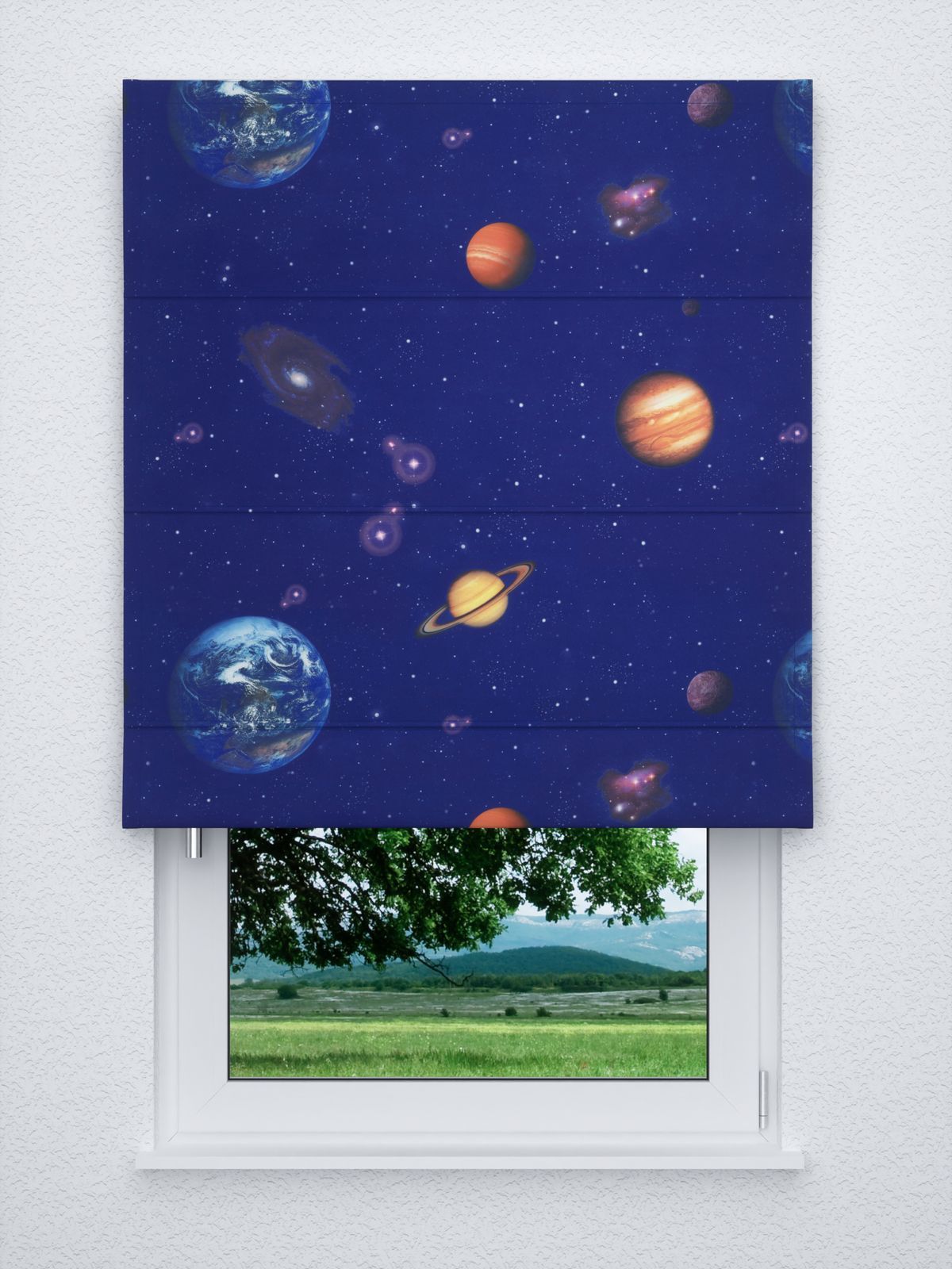 Einen Ausflug in den Weltraum bietet dieser Stoff. Von dort aus erhält man einen einzigartigen Blick auf das Sonnensystem und unsere Erde, die plötzlich ganz klein erscheint, gleichzeitig zum Greifen nah. Die intensiven Farben und die Sterne sorgen für ein außergewöhnliches Flair, das zum Träumen und Entspannen einlädt. Dabei kann der auf der Vorderseite bedruckte Polyesterstoff die Basis für die verschiedensten Arten von Accessoires sein. Im Konfigurator können Sie sich einen Gardinenschal oder ein Raffrollo nach Maß zusammenstellen und dabei neben den Maßen auch die Aufhängung festlegen. Das lichtdurchlässige Gewebe sorgt dafür, dass der Raum ein helles, und freundliches Ambiente erhält und bietet gleichzeitig tagsüber wie abends zuverlässigen Sichtschutz. Für die Umsetzung eigener kreativer Ideen bieten wir den Stoff als Meterware an. Für die Kinderzimmer Deko ist das Design ideal.