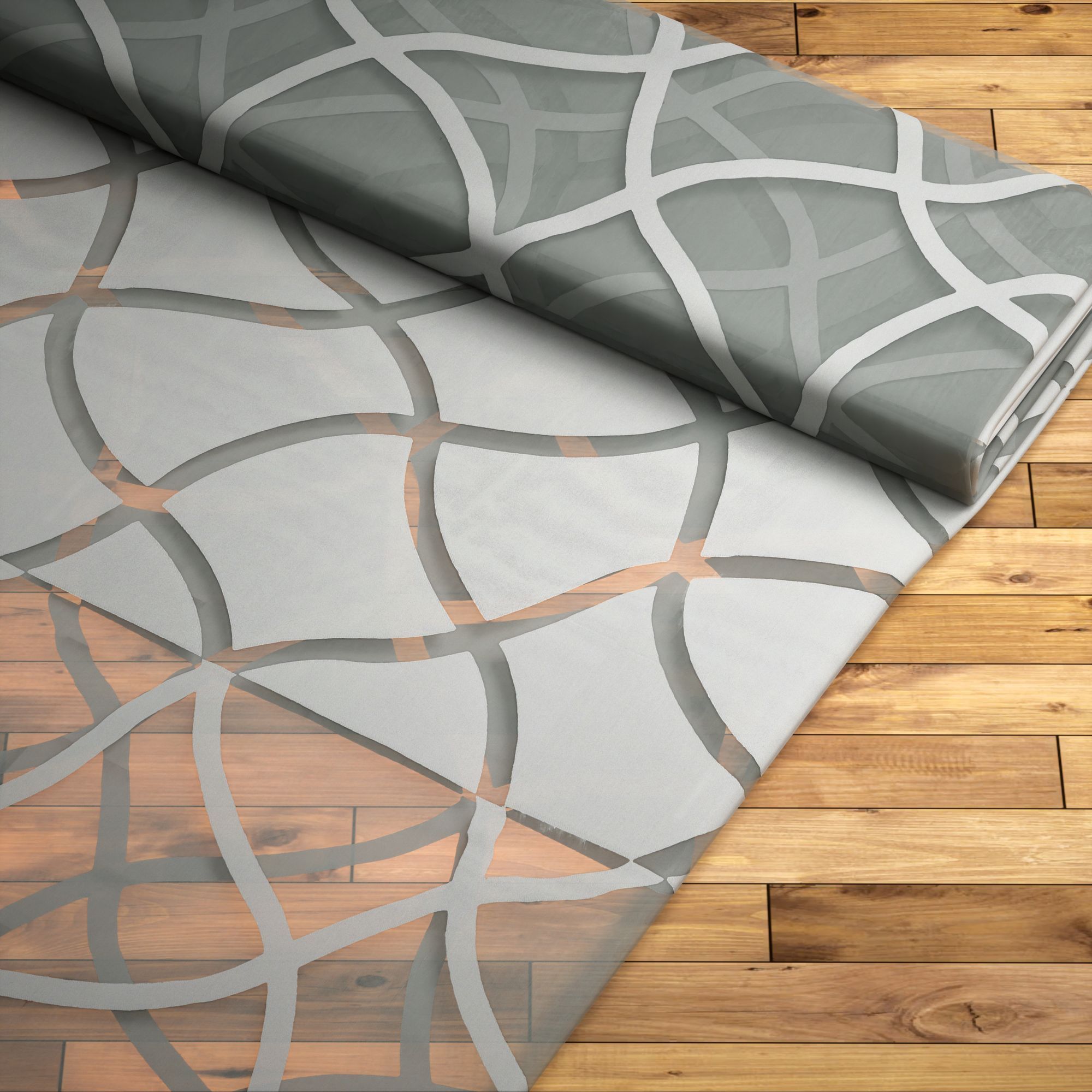 Mit seinem in Ausbrenner-Optik gestalteten Muster verbreitet dieser Stoff eine weiche Behaglichkeit. Die geschwungenen Linien durchziehen den Stoff in gleichmäßiger Harmonie, kreuzen und überschneiden sich, wodurch ein lockeres, netzartiges Design entsteht. Da das Muster durchsichtig ist und sich in seiner Transparenz vom Grundstoff unterscheidet, können bei Lichteinfall abwechslungsreiche Licht- und Schattenspiele entstehen. Mit unifarbenen, blickdichten Stoffen lässt sich dieses Modell toll kombinieren. Der Stoff liefert die ideale Basis für eine Fensterdeko nach Maß, die Sie sich beispielsweise als Raffrollo oder Gardinenschal im Konfigurator zusammenstellen können. Nehmen Sie den Stoff als Meterware zur Erstellung individueller Wohnaccessoires.