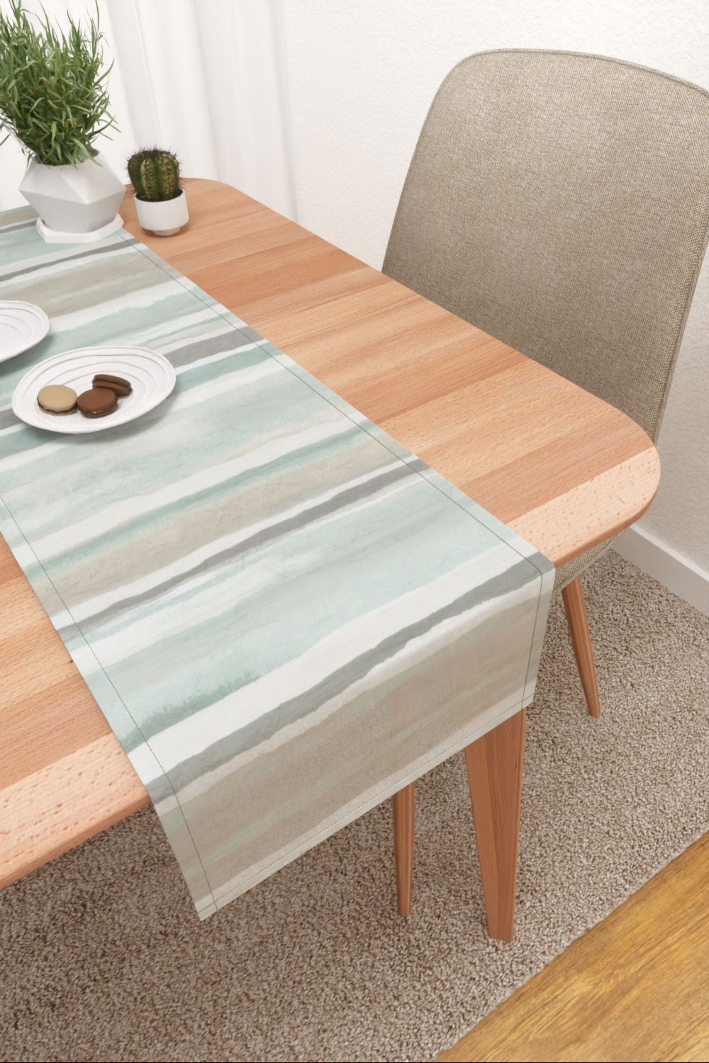 Mit der Gestaltung in verschiedenen Minttönen, Grauoliv und Weiß bringt dieser Stoff die Leichtigkeit des Sommers zum Ausdruck. Entspannend und erfrischend zugleich lockert er das Ambiente auf und trägt zu einem freundlichen Flair bei. Indem Sie weitere Blautöne wie Türkis und Petrol ergänzen, Naturmaterialien wie Holz, Leinen und Rattan sowie sanfte Erdfarben einsetzen, wird das Urlaubsfeeling perfekt.