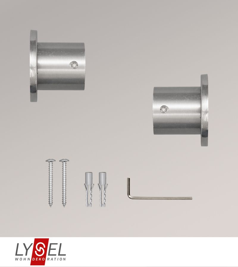 Diesen geschlossenen Wandträger mit fester Metallmontageplatte können Sie für einläufige Dekorationen mit Topaz Gardinenstangen und anderen Gardinenstangen mit einem Durchmesser von 16 mm verwenden. Mit dem beiliegenden Material wird der 13,5 cm lange Träger aus Metall an die Wand geschraubt, anschließend die Stange in die ringförmige Öffnung eingeschoben. Für einen stabilen Halt empfehlen wir ab einer Stangenlänge von 200 cm drei Träger zu verwenden.